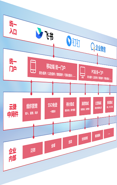 对协作平台提供支持服务,,支持企业应用与协作平台对接,,,,包含组织同步、、、、消息集成、、、、待办集成等。。支持目前主流的协作平台:钉钉、、企微和飞书。。